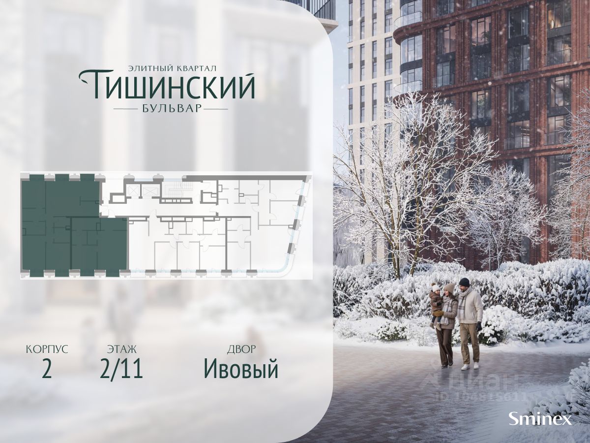 В продаже многокомнатная квартира квартира в элитном квартале ''Тишинский бульвар''. Общая площадь квартиры - 176.10 кв.м. Этаж 2 из 11. Корпус К4С2.