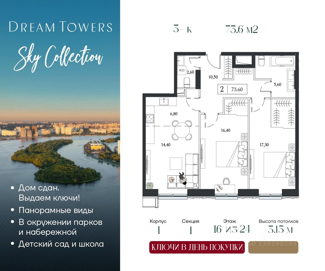 ЖК Dream Towers — проект премиум-класса в окружении парков и набережной, с полностью готовой инфраструктурой для комфортной жизни и отдыха.