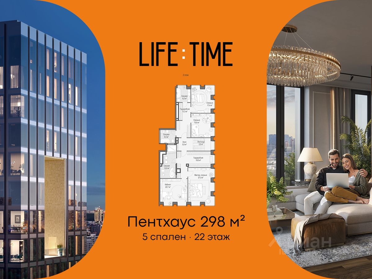 Life Time - роскошный современный квартал на Пресне, в наиболее быстро растущем премиальном районе ЦАО. Его насыщенная инфраструктура и выгодное расположение дарят время для жизни. Вы больше не тратите его на дорогу или ожидание, при этом ни в чём себе не отказывая. На территории предусмотрено всё для комфортной жизни: • двор-парк площадью 1,8 гектара с прудом и фонтанами, • Clubhouse - инфраструктурный центр в отдельном здании с исчерпывающими возможностями для спорта, отдыха и досуга только для жителей, • спортивная инфраструктура на улице и в помещении, в том числе бассейн длиной 25 метров, хот-таб, хаммам, сауна, бьюти-зона, • клубная гостиная с террасой, • всё для развития и досуга детей любого возраста, в том числе детский сад и школа. Life Time находится в центре сложившегося премиального района, в окружении многочисленных парков. Удобная транспортная доступность и прямой выезд на Звенигородское шоссе позволяют без проблем добраться до Садового кольца и Москва-Сити. Архитектурный стиль квартала - роскошный минимализм. Дома десятилетиями будут выглядеть современно. В Life Time представлен широкий выбор как квартир, так и особых форматов: двухэтажные пентхаусы с каминами и террасами, скай-виллы.