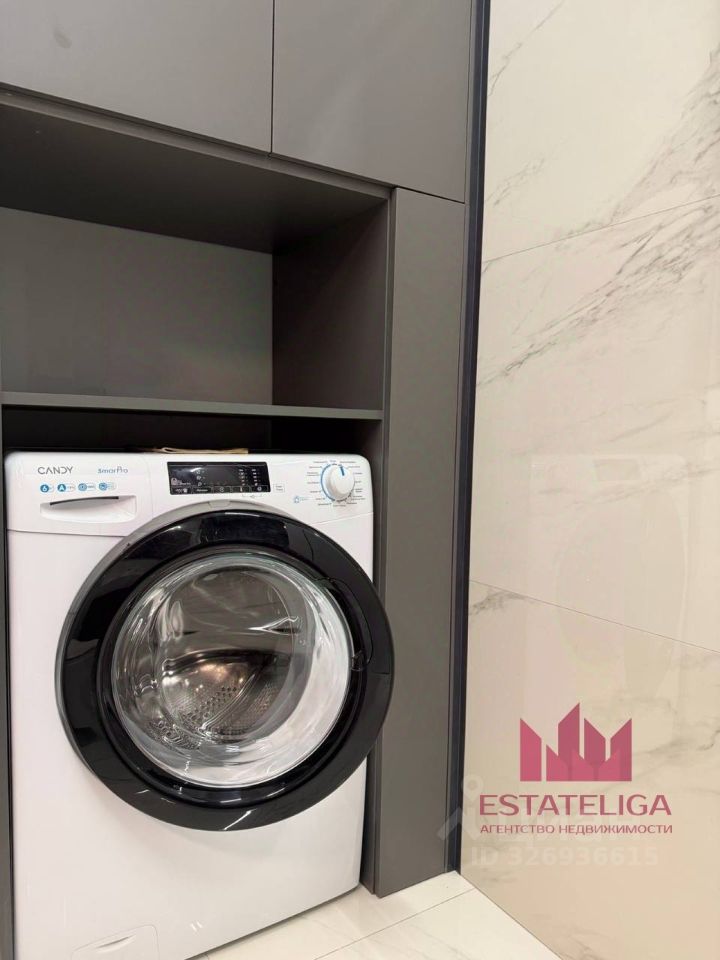 В комнате и кухне есть необходимая мебель. Из техники: холодильник, посудомоечная машина, духовая печь, электро-варочная панель, кондиционер, телевизор и стиральная машина. В санузле установлена ванна. В квартире предусмотрено большое количество места для хранения. Подключён интернет, поэтому можно работать из дома.