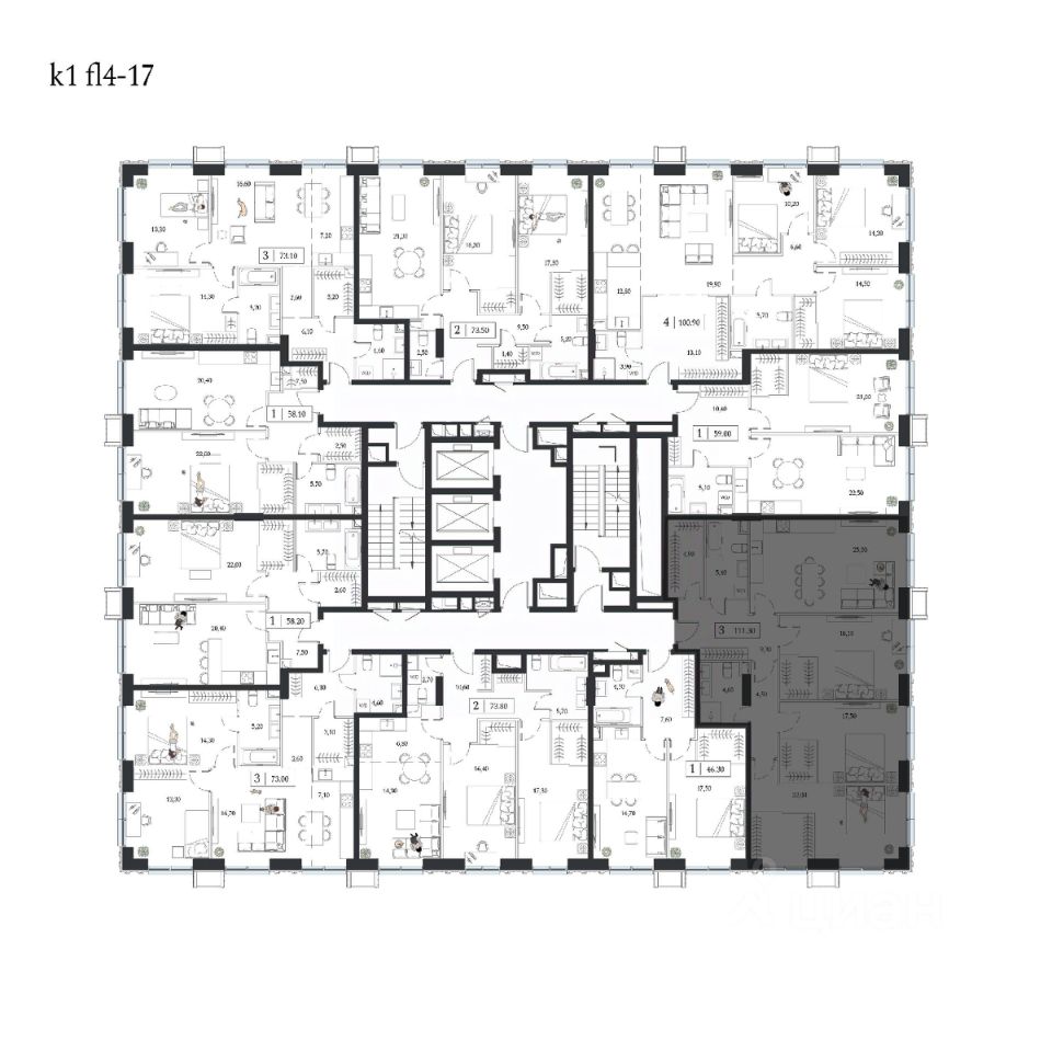 Продаётся 4-квартира на 8 этаже 24-этажного дома (1 корпус). Общая площадь: 111.2 кв.м. Высота потолков от 3.15 м.