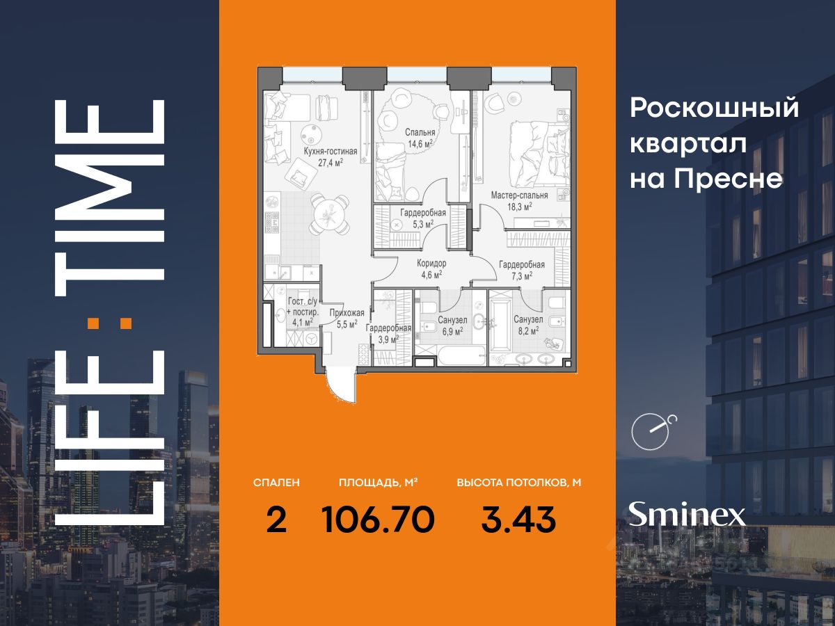 Life Time - роскошный современный квартал на Пресне, в наиболее быстро растущем премиальном районе ЦАО. Его насыщенная инфраструктура и выгодное расположение дарят время для жизни. Вы больше не тратите его на дорогу или ожидание, при этом ни в чём себе не отказывая.