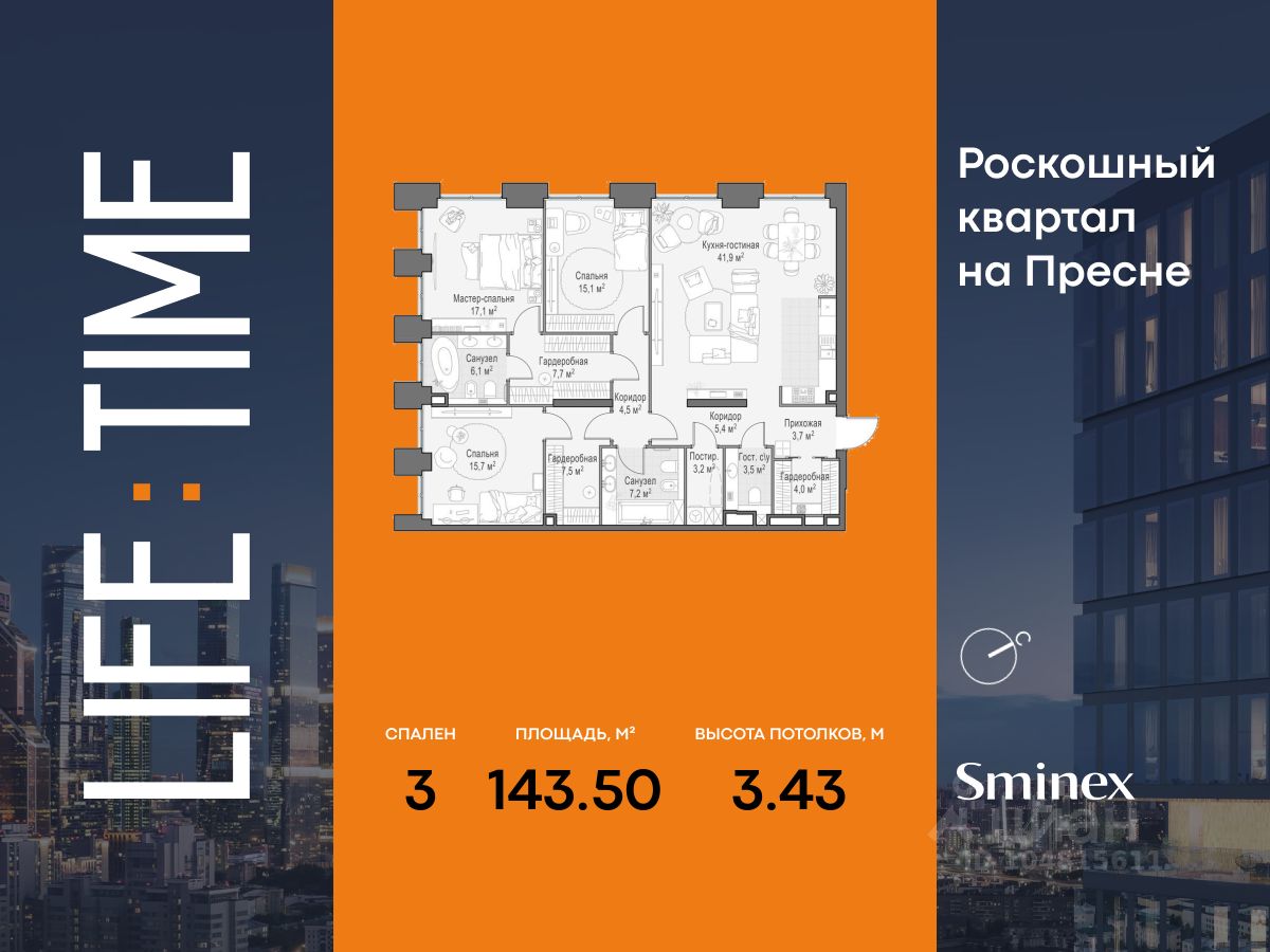 Life Time - роскошный современный квартал на Пресне, в наиболее быстро растущем премиальном районе ЦАО. Его насыщенная инфраструктура и выгодное расположение дарят время для жизни. Вы больше не тратите его на дорогу или ожидание, при этом ни в чём себе не отказывая.
