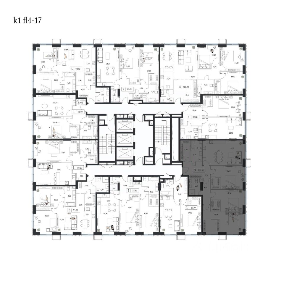 Продаётся 4-квартира на 10 этаже 24-этажного дома (1 корпус). Общая площадь: 111.2 кв.м. Высота потолков от 3.15 м.