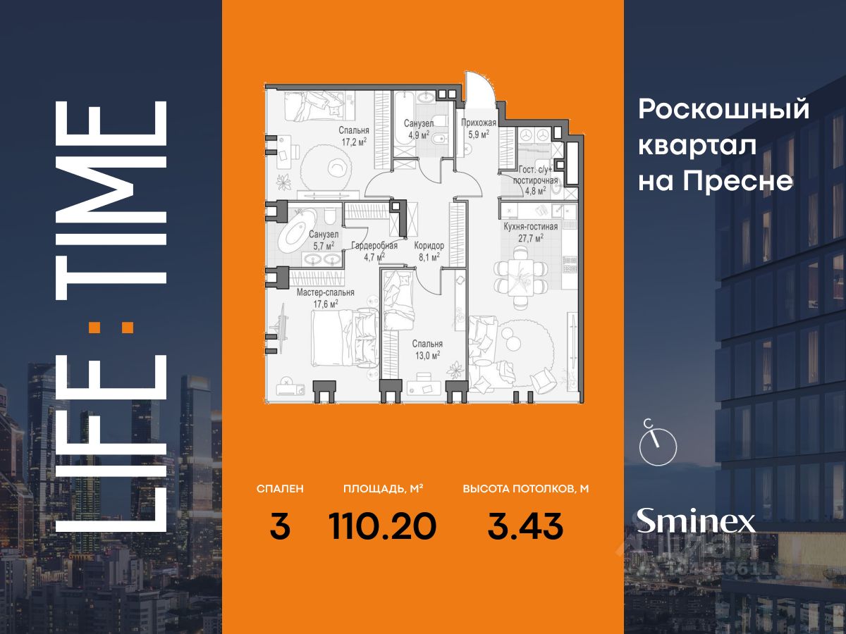 Life Time - роскошный современный квартал на Пресне, в наиболее быстро растущем премиальном районе ЦАО. Его насыщенная инфраструктура и выгодное расположение дарят время для жизни. Вы больше не тратите его на дорогу или ожидание, при этом ни в чём себе не отказывая.