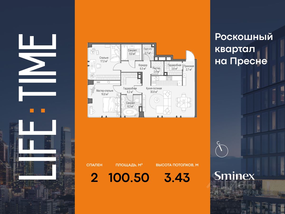 Life Time - роскошный современный квартал на Пресне, в наиболее быстро растущем премиальном районе ЦАО. Его насыщенная инфраструктура и выгодное расположение дарят время для жизни. Вы больше не тратите его на дорогу или ожидание, при этом ни в чём себе не отказывая.