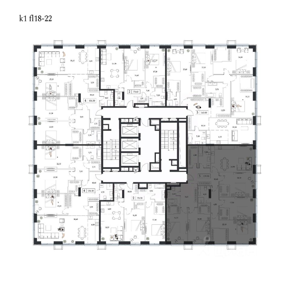 Продаётся 5-квартира на 21 этаже 24-этажного дома (1 корпус). Общая площадь: 159.9 кв.м. Высота потолков от 3.15 м.
