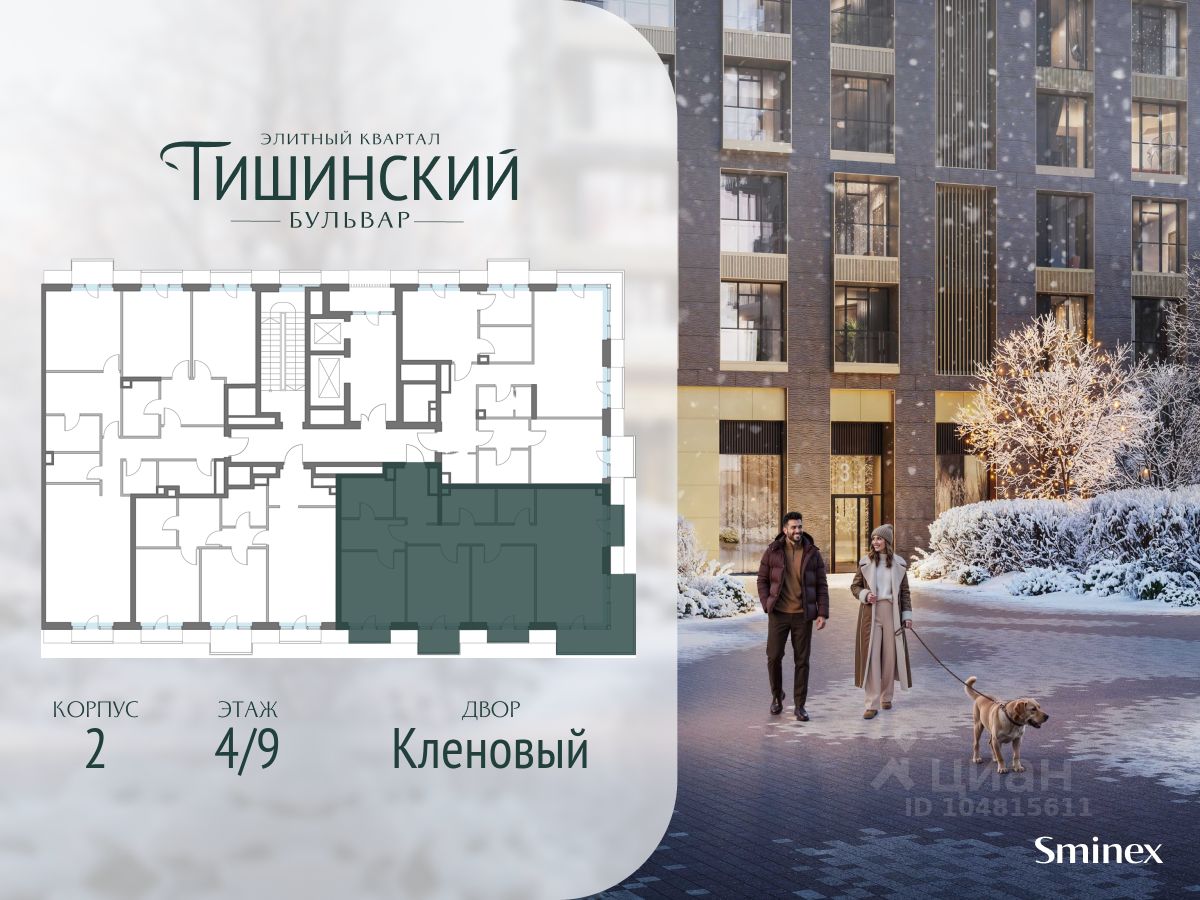 В продаже 3-комнатная квартира квартира в элитном квартале ''Тишинский бульвар''. Общая площадь квартиры - 103.80 кв.м. Этаж 4 из 9. Корпус 8С2.