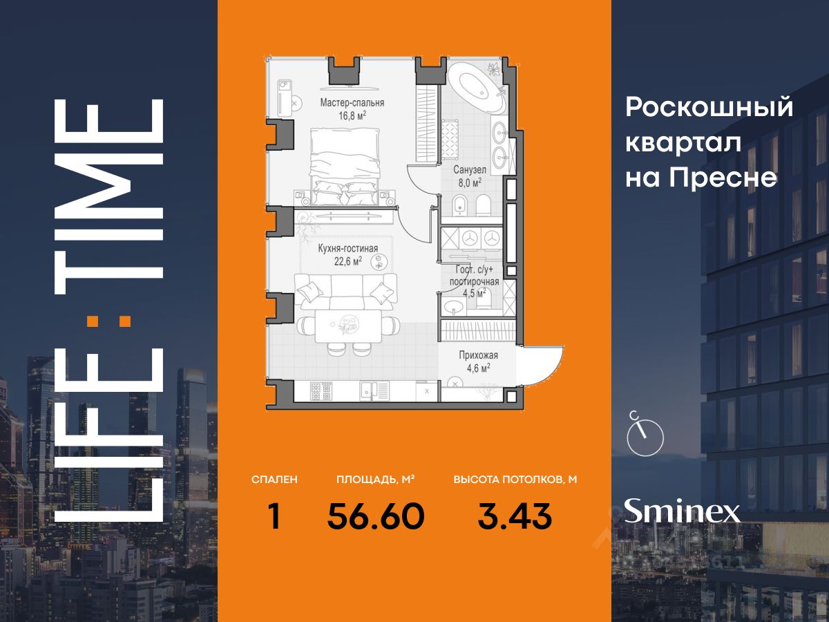 Life Time - роскошный современный квартал на Пресне, в наиболее быстро растущем премиальном районе ЦАО. Его насыщенная инфраструктура и выгодное расположение дарят время для жизни. Вы больше не тратите его на дорогу или ожидание, при этом ни в чём себе не отказывая. На территории предусмотрено всё для комфортной жизни: • двор-парк площадью 1,8 гектара с прудом и фонтанами, • Clubhouse - инфраструктурный центр в отдельном здании с исчерпывающими возможностями для спорта, отдыха и досуга только для жителей, • спортивная инфраструктура на улице и в помещении, в том числе бассейн длиной 25 метров, хот-таб, хаммам, сауна, бьюти-зона, • клубная гостиная с террасой, • всё для развития и досуга детей любого возраста, в том числе детский сад и школа. Life Time находится в центре сложившегося премиального района, в окружении многочисленных парков. Удобная транспортная доступность и прямой выезд на Звенигородское шоссе позволяют без проблем добраться до Садового кольца и Москва-Сити. Архитектурный стиль квартала - роскошный минимализм. Дома десятилетиями будут выглядеть современно.