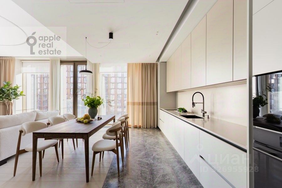Стильная 3-комнатная квартира в ЖК премиум класса Victory Park Residences. Функциональная планировка: совмещенная с гостиной кухня, 2 спальни, у каждой из которых свой санузел, гостевой санузел, постирочная комната, балкон. Общая площадь: 126 кв.м. Потолки 3,2 м. Ремонт выполнен в уникальном авторском стиле с использованием мрамора и других высококачественных материалов. Квартира полностью обставлена мебелью, кроме одной спальни, которую собственник готов мебелировать по запросу будущего арендатора, а также оборудована всей необходимой техникой: телевизор, посудомоечная машина, холодильник, приточно-вытяжная система вентиляции и кондиционирования, стиральная и сушильная машины, система теплого пола, электрокарнизы, высокоскоростной интернет.
