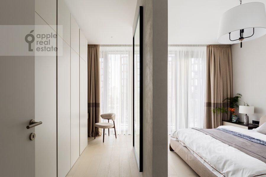 Стильная 3-комнатная квартира в ЖК премиум класса Victory Park Residences. Функциональная планировка: совмещенная с гостиной кухня, 2 спальни, у каждой из которых свой санузел, гостевой санузел, постирочная комната, балкон. Общая площадь: 126 кв.м. Потолки 3,2 м. Ремонт выполнен в уникальном авторском стиле с использованием мрамора и других высококачественных материалов. Квартира полностью обставлена мебелью, кроме одной спальни, которую собственник готов мебелировать по запросу будущего арендатора, а также оборудована всей необходимой техникой: телевизор, посудомоечная машина, холодильник, приточно-вытяжная система вентиляции и кондиционирования, стиральная и сушильная машины, система теплого пола, электрокарнизы, высокоскоростной интернет. Окна выходят в тихий двор. Территория дома огорожена и круглосуточно охраняется. В подземном паркинге возможно арендовать 2 машиноместа за дополнительную плату. Возможна оплата по безналичному расчету, а также аренда с маленькими детьми.