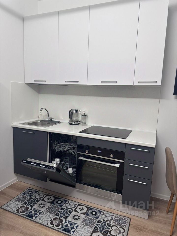 • Свежий ремонт: всё новое и чистое. • Полный комплект техники: холодильник, микроволновая печь, варочная панель, стиральная машина и — редкость для студий — посудомоечная машина! • Комфорт: проведен скоростной интернет, подключено ТВ.