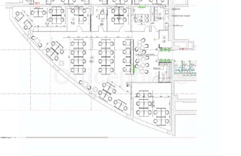 В помещении выполнена офисная отделка, смешанная планировка.