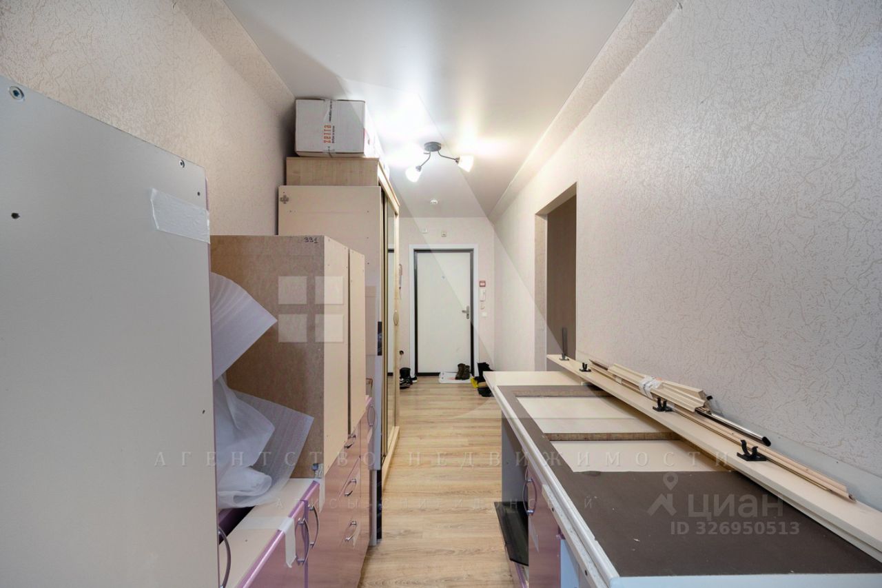 Просторная прихожая, две изолированный комнаты 19 и 13.4 метра, и большая кухня.