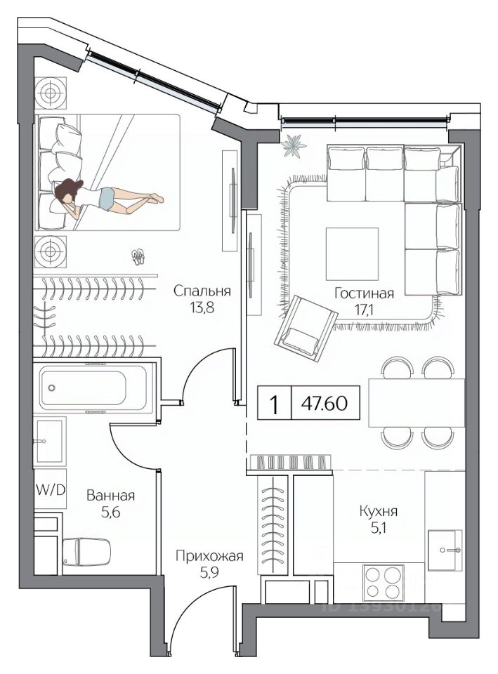 Общая площадь47,6 м2