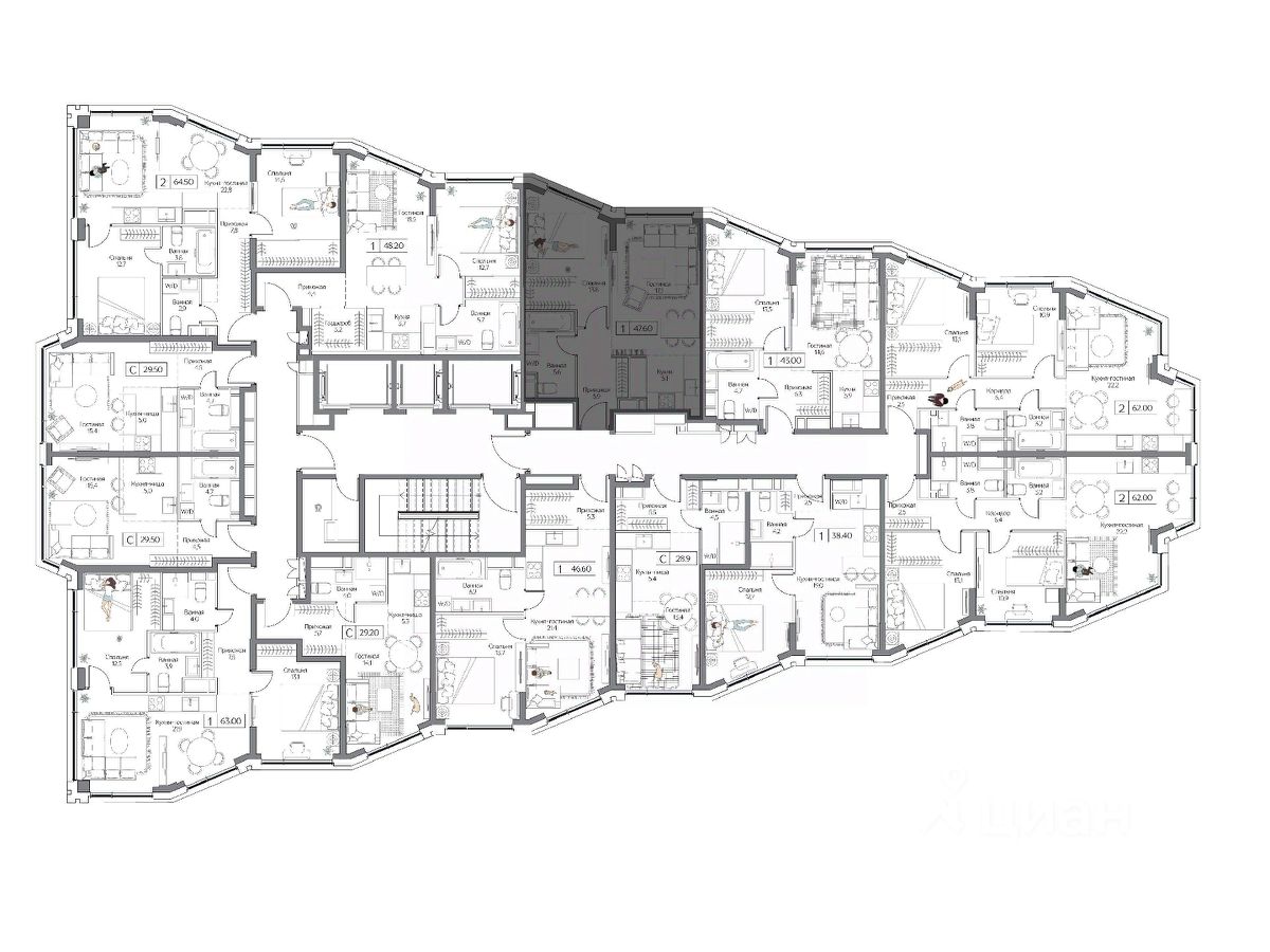 Квартиры с разнообразным выбором планировок — для свободных людей и больших семей с детьми. Квартиры с опцией без отделки для воплощений смелых проектов и с дизайнерским интерьером для тех, кто готов уже завтра праздновать новоселье.