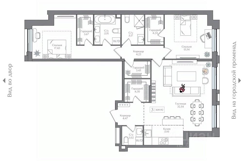 Продаётся 2-комнатная квартира в сданном доме (Корпус 3 (I очередь)), срок сдачи: II-кв. 2025, общей площадью 109.92 кв.м., на 3 этаже. Жилой комплекс с подземной автостоянкой, отдельно стоящими ДОУ, БНК (учебный корпус) и многофункциональным центром.