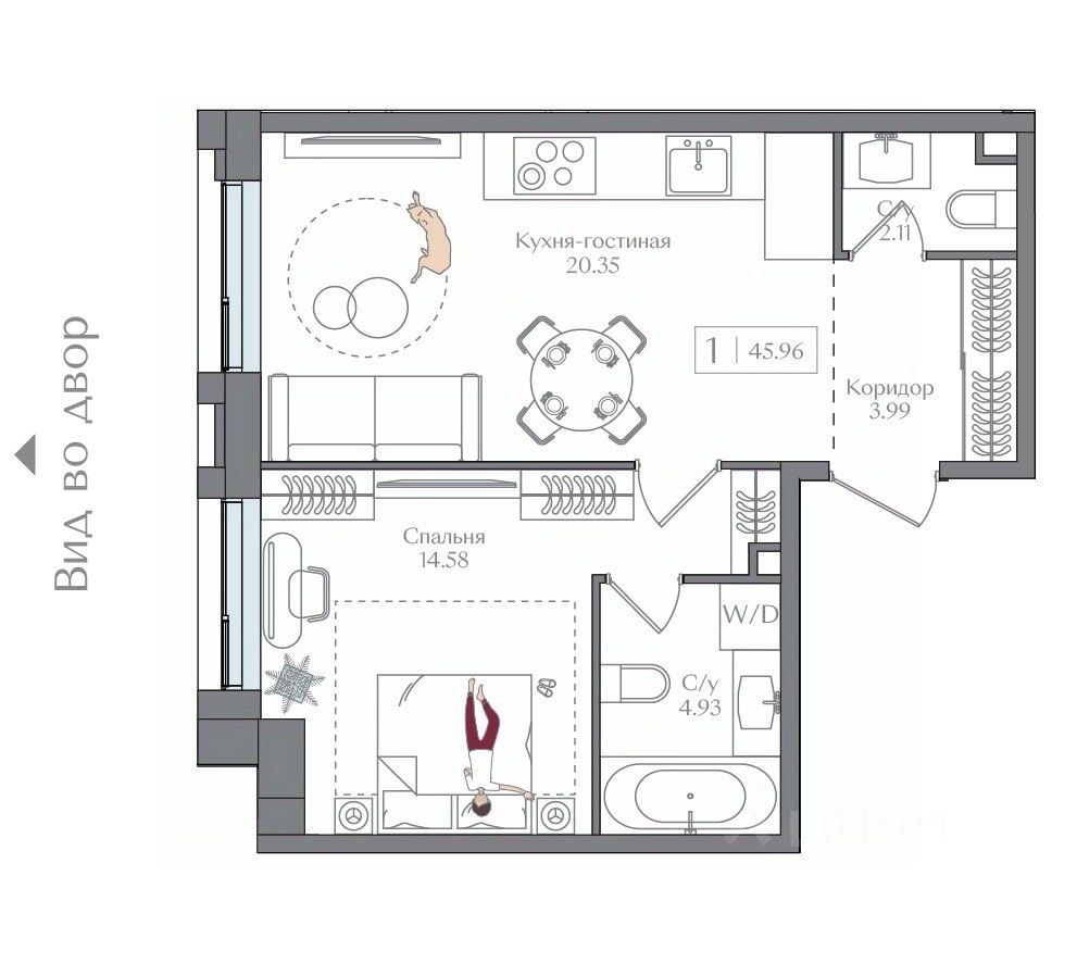 Продаётся 1-комнатная квартира в сданном доме (Корпус 3 (I очередь)), срок сдачи: II-кв. 2025, общей площадью 45.96 кв.м., на 7 этаже. Жилой комплекс с подземной автостоянкой, отдельно стоящими ДОУ, БНК (учебный корпус) и многофункциональным центром.