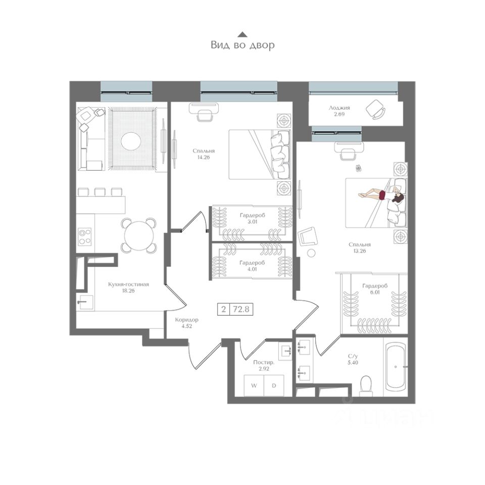 Общая площадь72,8 м2