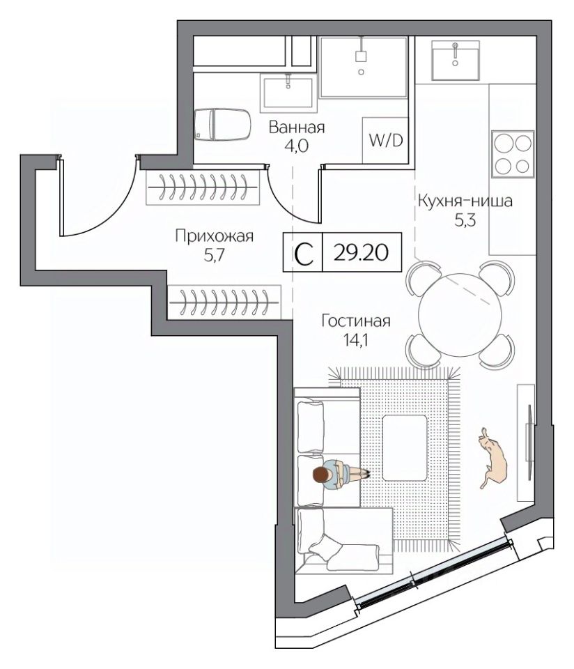 Общая площадь29,2 м2
