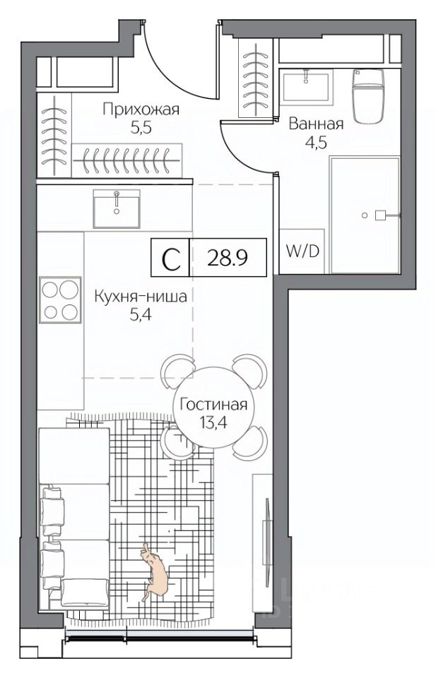 Общая площадь28,9 м2