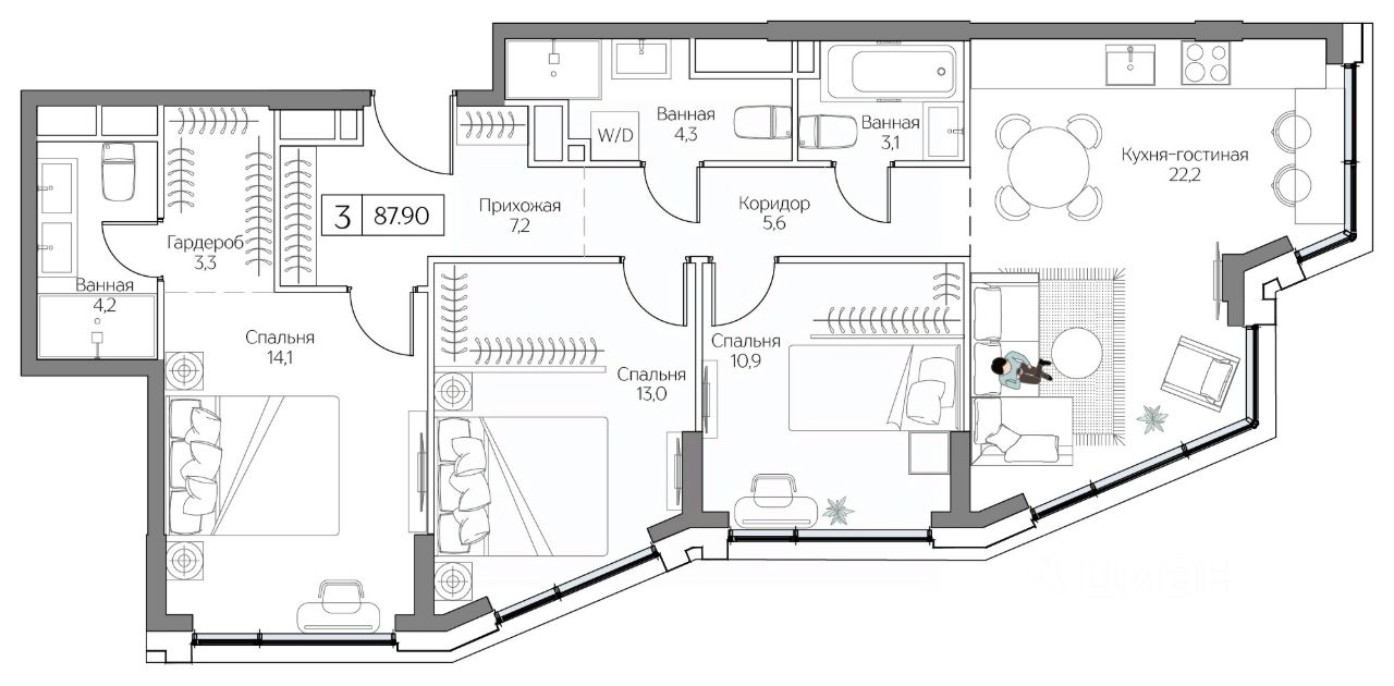 Общая площадь87,9 м2