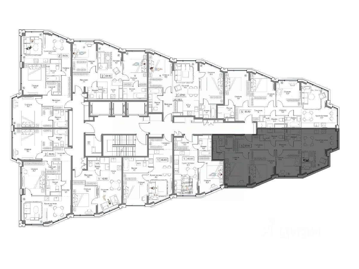 Квартиры с разнообразным выбором планировок — для свободных людей и больших семей с детьми. Квартиры с опцией без отделки для воплощений смелых проектов и с дизайнерским интерьером для тех, кто готов уже завтра праздновать новоселье.