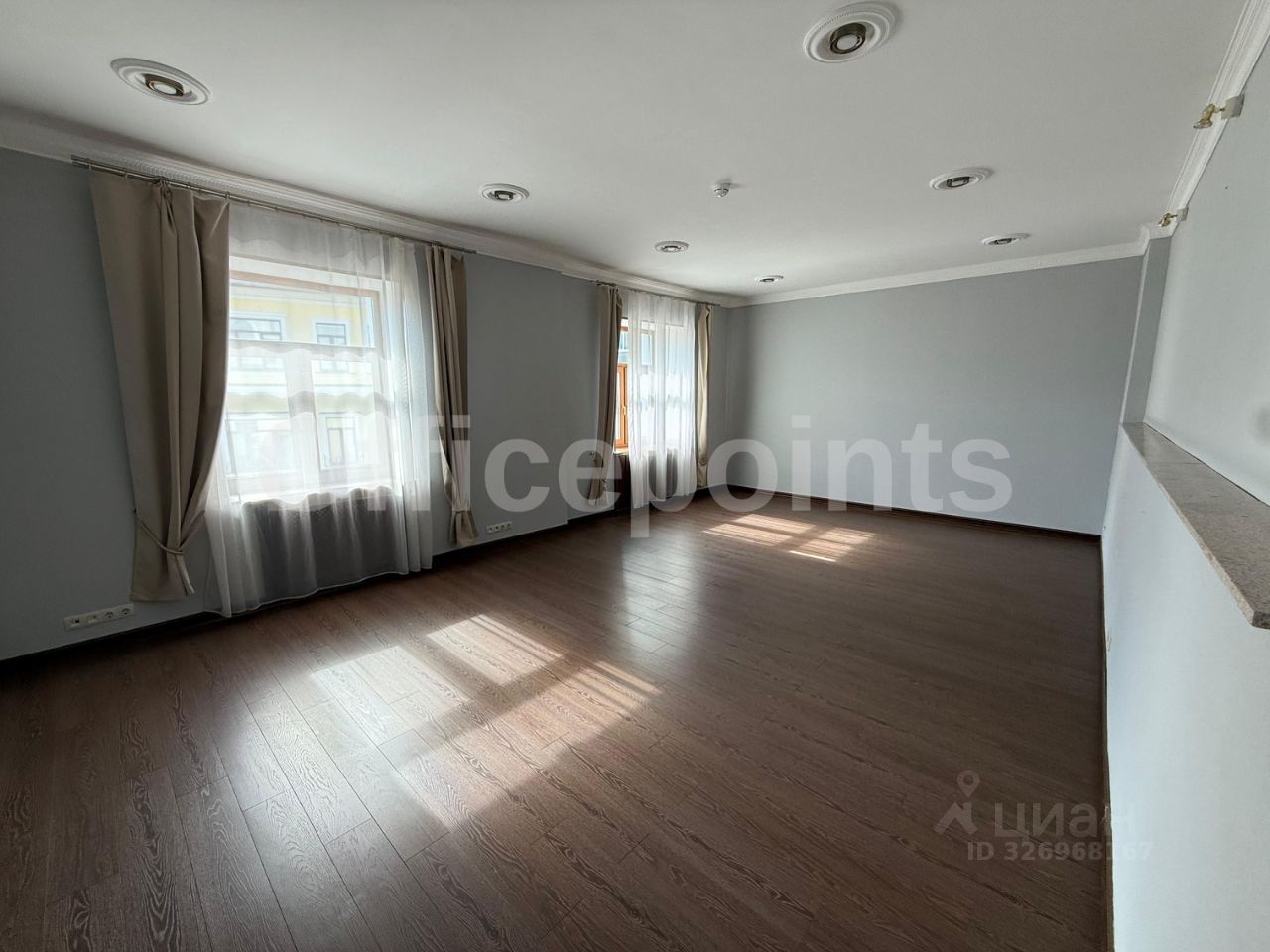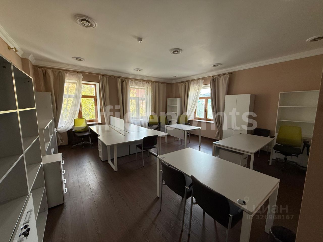 В помещении выполнена отделка, кабинетная планировка. Естественная вентиляция, кондиционирование отсутствует. В наличии наземная парковка.