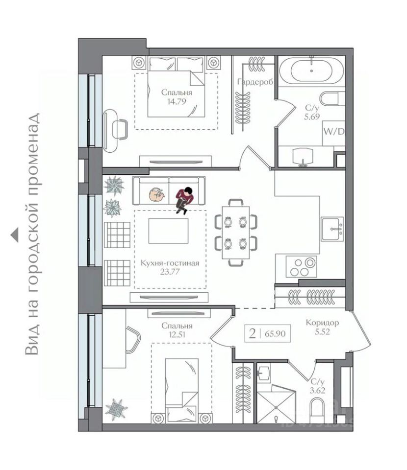 Продаётся 2-комнатная квартира в строящемся доме (Корпус 5 (II очередь)), срок сдачи: II-кв. 2027, общей площадью 65.9 кв.м., на 4 этаже. Жилой комплекс с подземной автостоянкой, отдельно стоящими ДОУ, БНК (учебный корпус) и многофункциональным центром.