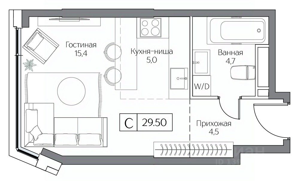 Общая площадь29,5 м2