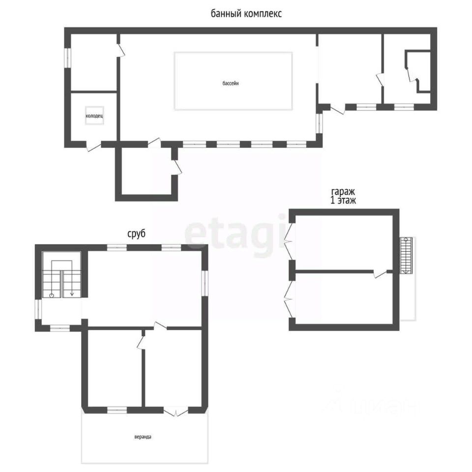 -Банный комплекс с чашей под бассейн (220 кв.м.) — недостроен, идеальная основа для вашей личной зоны отдыха. -Гараж (130 кв.м.) на 2 автомобиля с жилым вторым этажом ,уже заведены свет и вода.