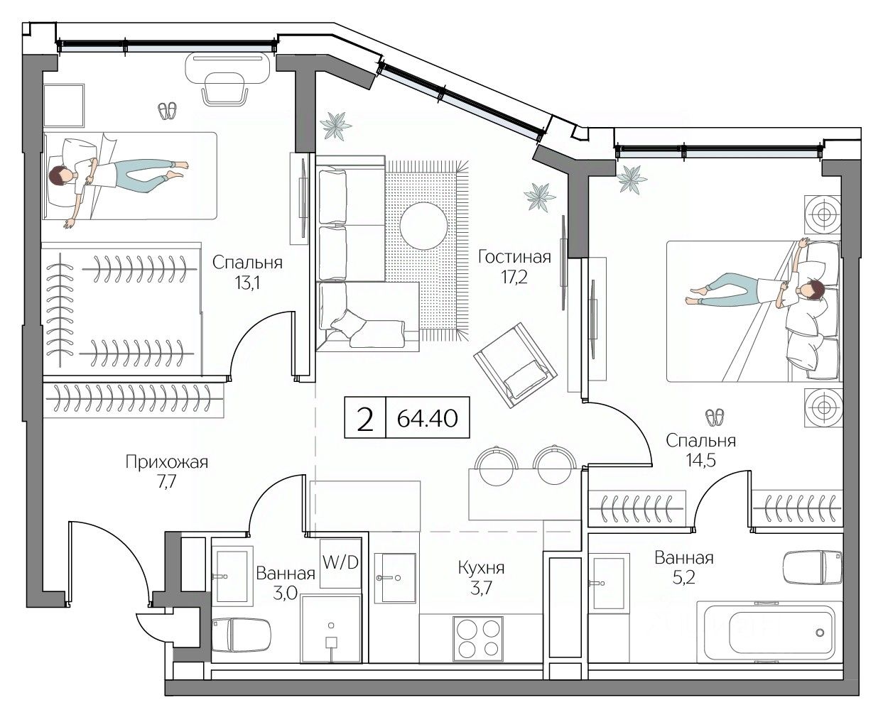 Общая площадь64,4 м2