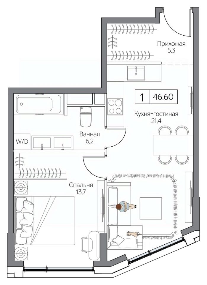 Общая площадь46,6 м2