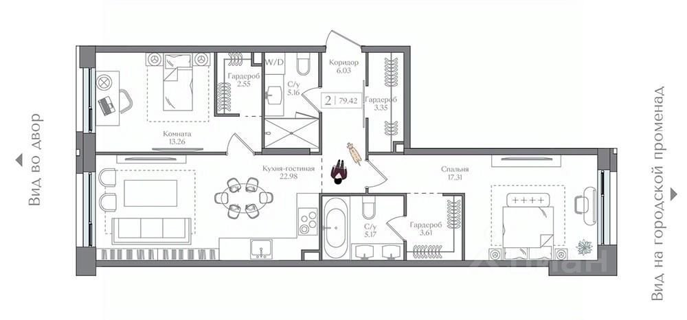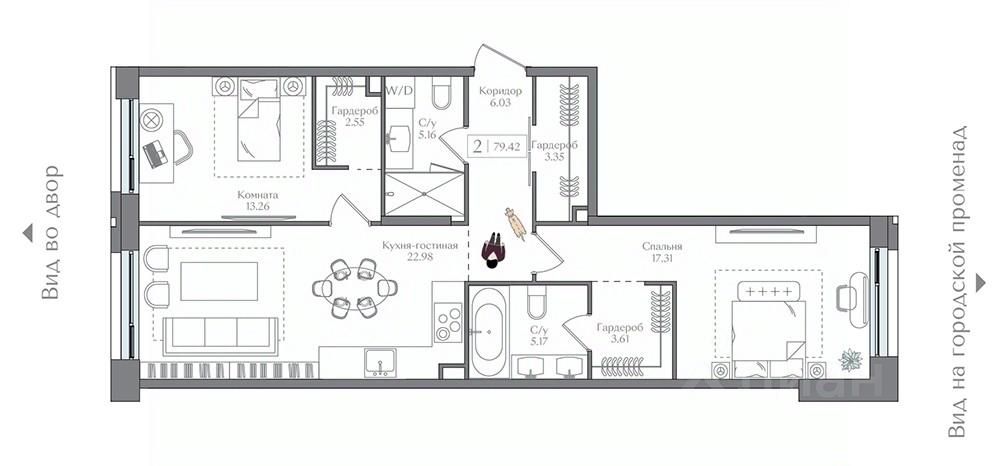 Продаётся 2-комнатная квартира в сданном доме (Корпус 3 (I очередь)), срок сдачи: II-кв. 2025, общей площадью 79.42 кв.м., на 13 этаже. Жилой комплекс с подземной автостоянкой, отдельно стоящими ДОУ, БНК (учебный корпус) и многофункциональным центром.