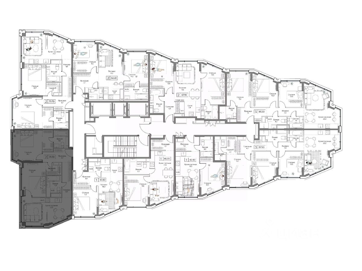 Квартиры с разнообразным выбором планировок — для свободных людей и больших семей с детьми. Квартиры с опцией без отделки для воплощений смелых проектов и с дизайнерским интерьером для тех, кто готов уже завтра праздновать новоселье.