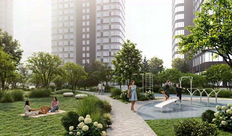 Особенности квартала: • Свой парк ''Зеленая Река'' - 10 га зелени и развлечений на любой вкус! • Уникальная для Москвы архитектура - Проект создан архитектурной мастерской ATRIUM по дизайн-коду британских бюро LDA Design и UHA London. • Богатая инфраструктура с детскими садами и лицеем им. Баумана, кафе и ресторанами, супермаркетами и аптеками, зоной для фитнеса, бассейном и мед. центром. • Квартиры с панорамными окнами, террасами, ванными с окнами и каминами редких форматов. • Закрытые безопасные зелёные дворы-парки без машин!