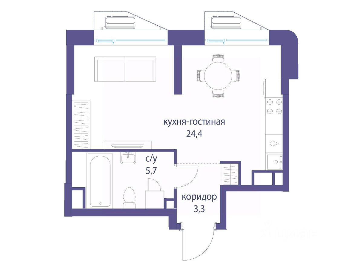 Общая площадь33,4 м2