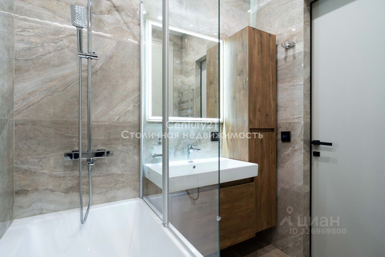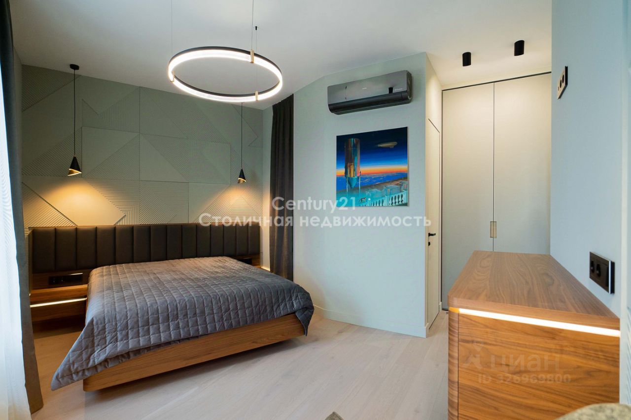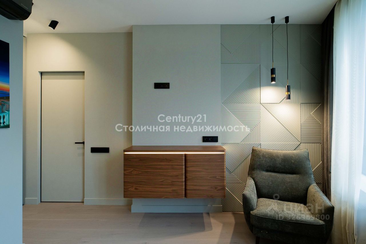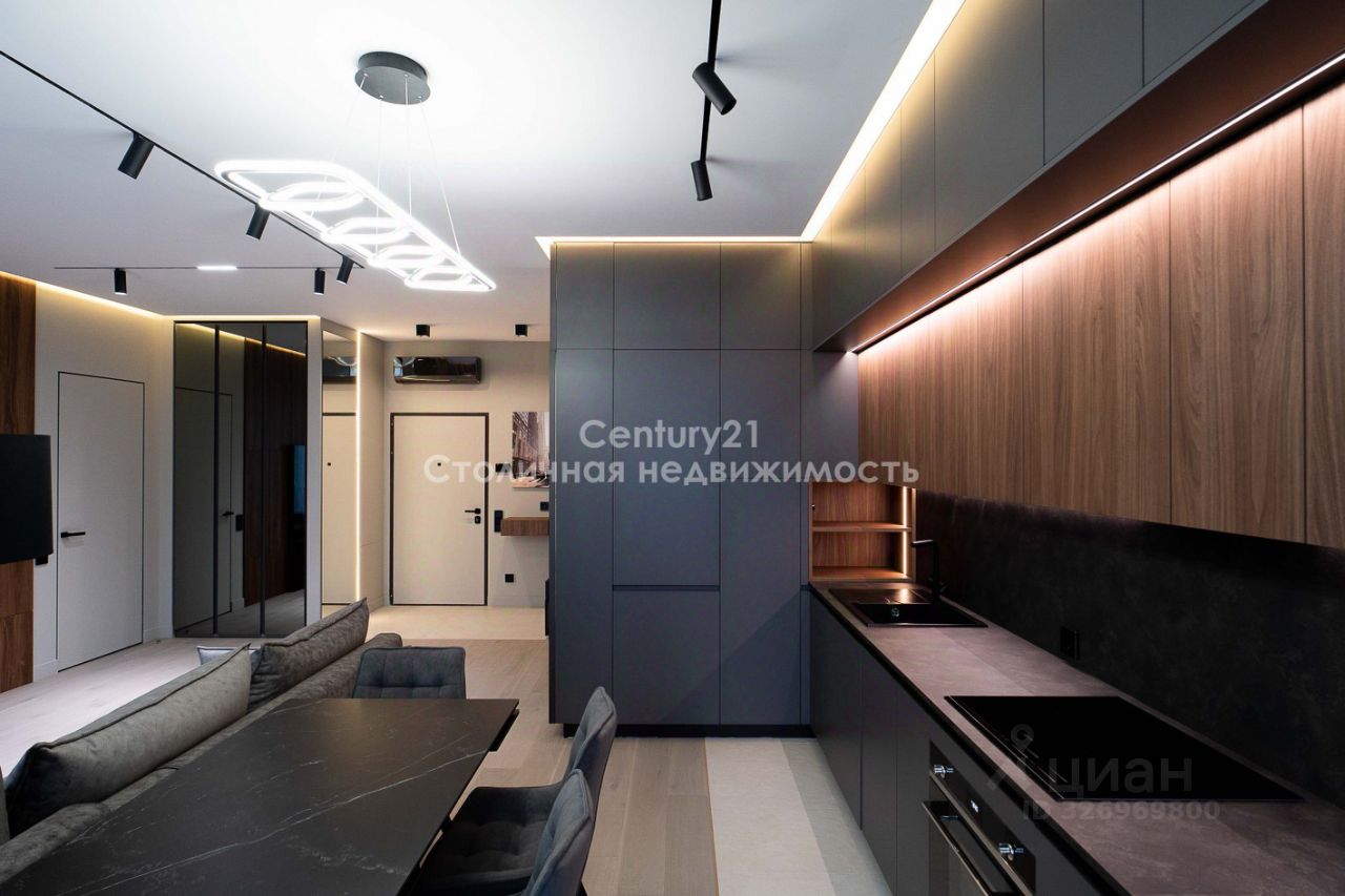 Выполнена дизайнерская отделка в современном стиле, продуманы различные сценарии освещения КВАРТИРА: Планировка представляет собой большую просторную кухню-гостиную, изолированную спальню, гардеробную и два сан узла. Квартира оборудована всей необходимой мебелью и техникой для комфортного проживания: - Натуральный камень и декоративные панели в отделке - Мебель из МДФ, изготовленная по индивидуальному заказу. - Черновая сантехника Rehau. - Электрическая система с использованием автоматов ABB. - Установлена система от протечки Нептун. - Система кондиционирования.