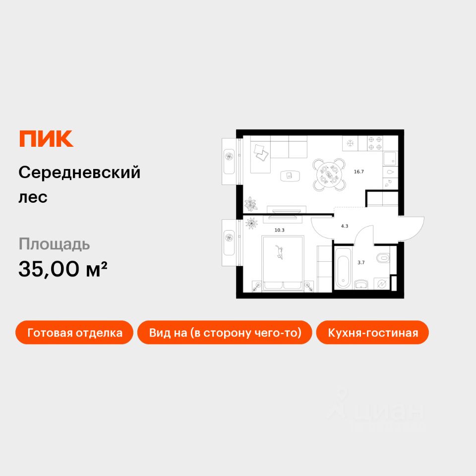 Продаётся 1-комн. квартира площадью 35 кв.м на 11 этаже 16 этажного дома (Корпус 2.1.6, Секция 6) проекта ПИК Середневский лес. Светлый просторный подъезд на уровне земли, функциональная планировка, большие окна, c отделкой.