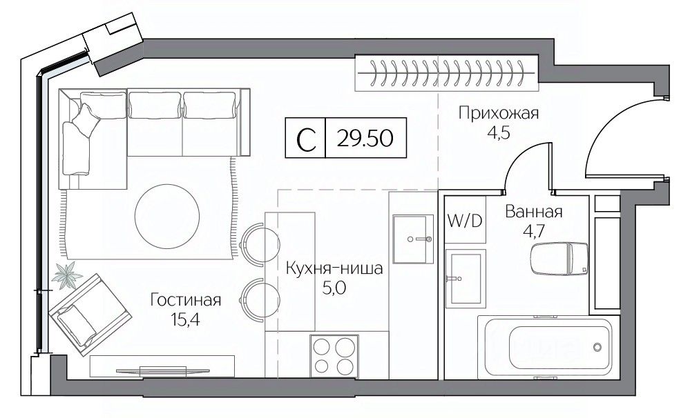 Общая площадь29,5 м2