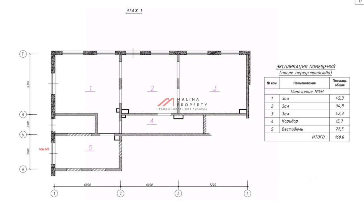 Помещение угловое 42,2 м2, располагается на 1 этаже, высота потолка 3,5 м, витринные окна по фасаду. Парковка перед фасадом. Место для размещения рекламы.