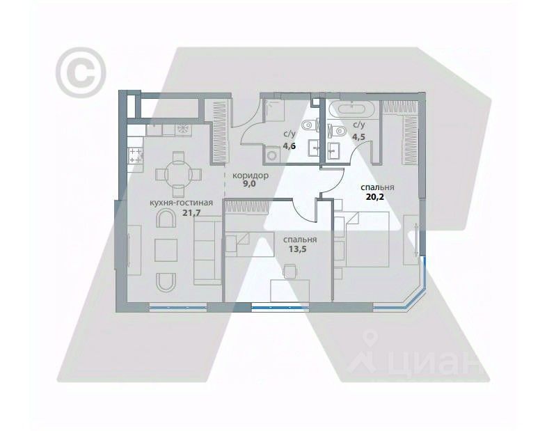 - кухня-гостиная 22 метра