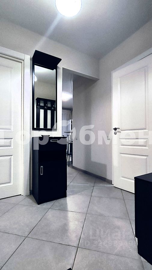 В квартире: •Комната: Спальный гарнитур (двуспальная кровать с ортопедическим матрасом, прикроватные тумбы), большой вместительный шкаф, комод, телевизор, кондиционер. •Кухня: Кухонный гарнитур, варочная панель, вытяжка, духовой шкаф, холодильник, электрический чайник. Обратите внимание, что между кухней и комнатой отсутствует дверь, что создает ощущение единого пространства. •Лоджия: Застекленная, с освещением (выход из кухни, идеальное место для утреннего кофе или отдыха). •Прихожая: Предусмотрено удобное место, которое можно использовать как гардеробную или обустроить компактный рабочий кабинет. •Санузел: Совмещенный, с душевой кабиной. Установлены счетчики света и воды и стиральная машина.