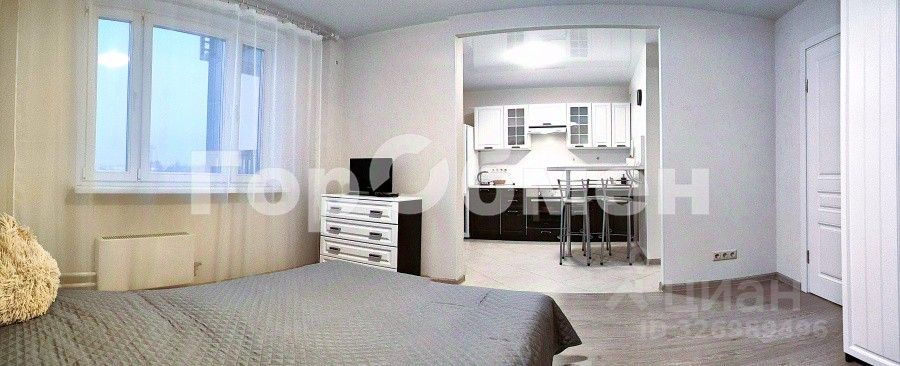В квартире: •Комната: Спальный гарнитур (двуспальная кровать с ортопедическим матрасом, прикроватные тумбы), большой вместительный шкаф, комод, телевизор, кондиционер. •Кухня: Кухонный гарнитур, варочная панель, вытяжка, духовой шкаф, холодильник, электрический чайник. Обратите внимание, что между кухней и комнатой отсутствует дверь, что создает ощущение единого пространства. •Лоджия: Застекленная, с освещением (выход из кухни, идеальное место для утреннего кофе или отдыха).