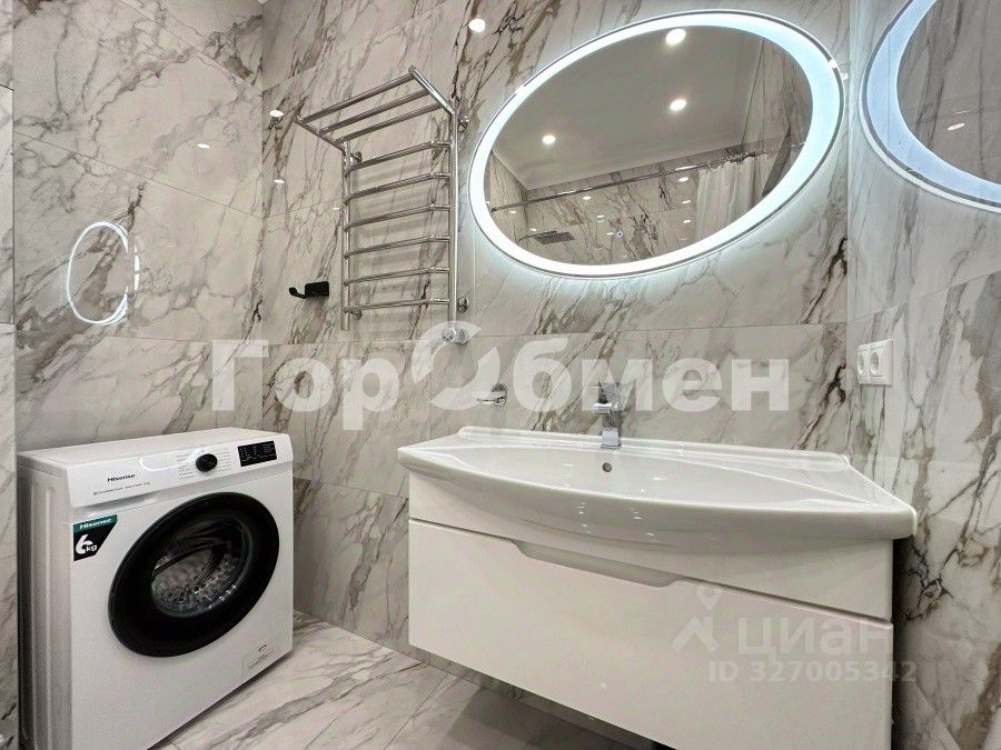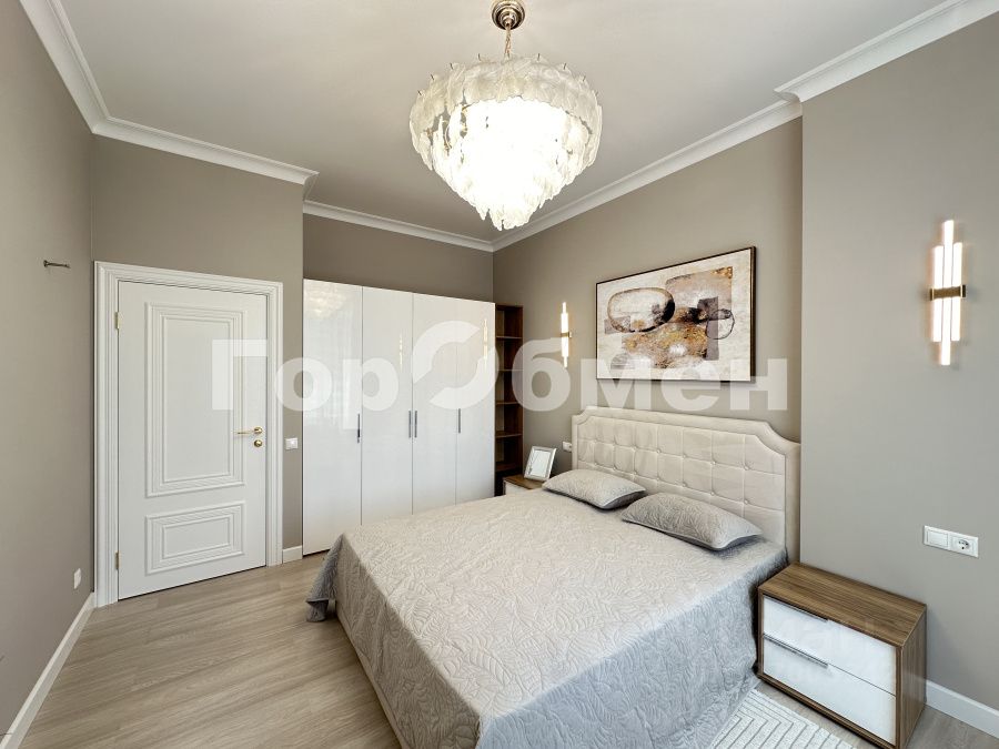Внутреннее пространство квартиры оформлено с учётом современных тенденций дизайна. Здесь выполнен дизайнерский ремонт, который создаёт атмосферу уюта и стиля. В квартире есть совмещённый санузел, что является удобным решением для экономии пространства и создания функциональной планировки. Планировка включает две просторные спальни, кухню-гостиную, совмещенный санузел, гардеробную.