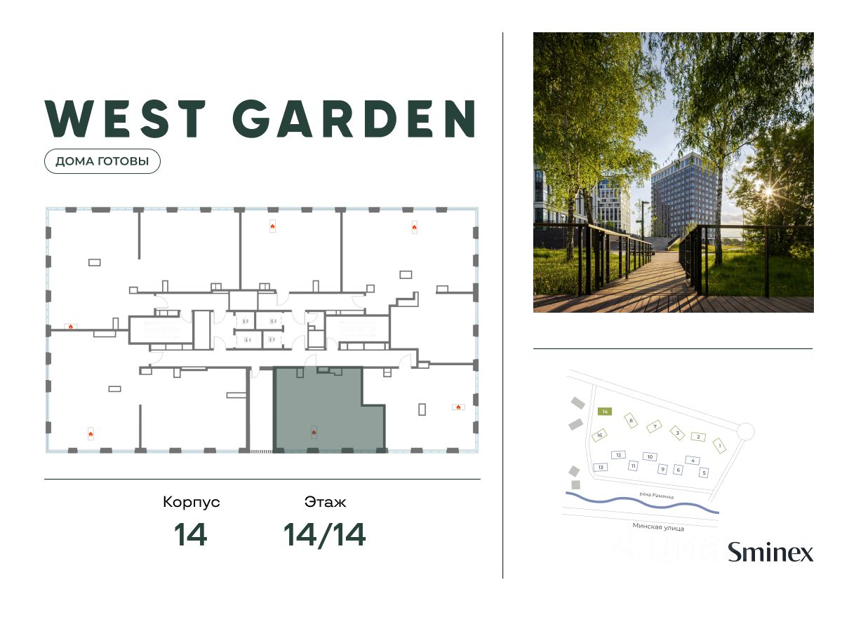 Клубные дома расположены в просторном парке 16 га, вдоль реки. Здесь есть всё для комфортного отдыха - прогулочные маршруты, беседки для пикника и пространства для тихого отдыха с беседками, качелями и навесами. 2 километра благоустроенной набережной реки Раменки - ещё одно пространство в вашем распоряжении.
