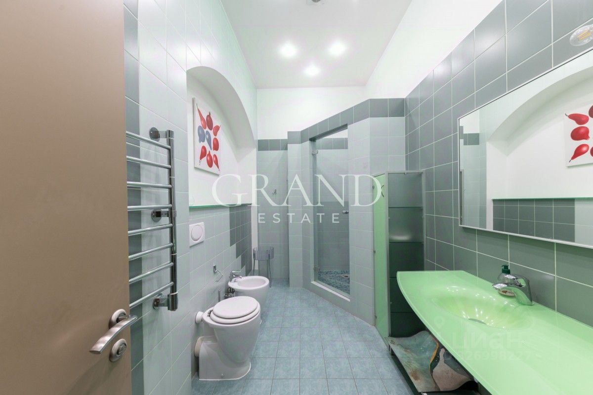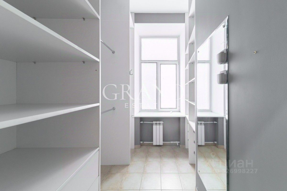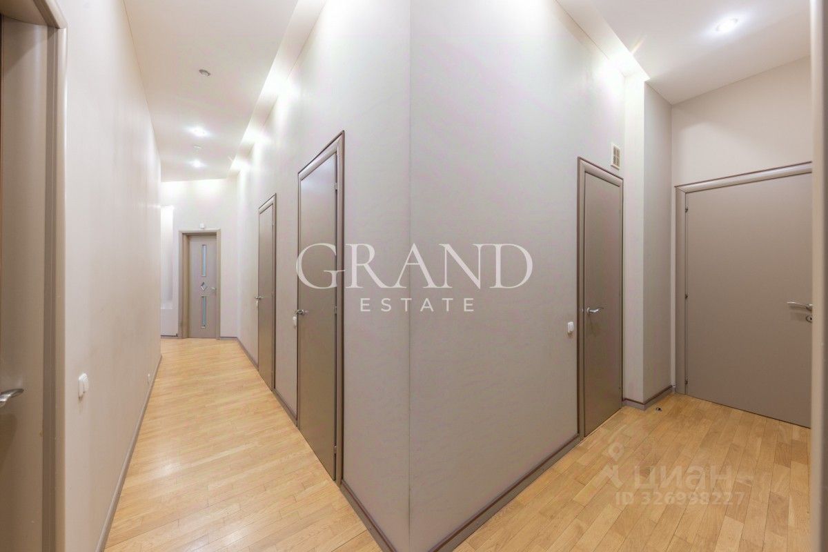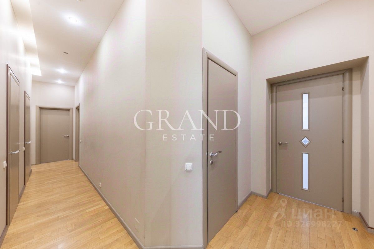 Планировка: гостиная, 4 спальни, кабинет, кухня, 2 гардеробных комнаты, постирочная, 3 санузла. Есть балкон.