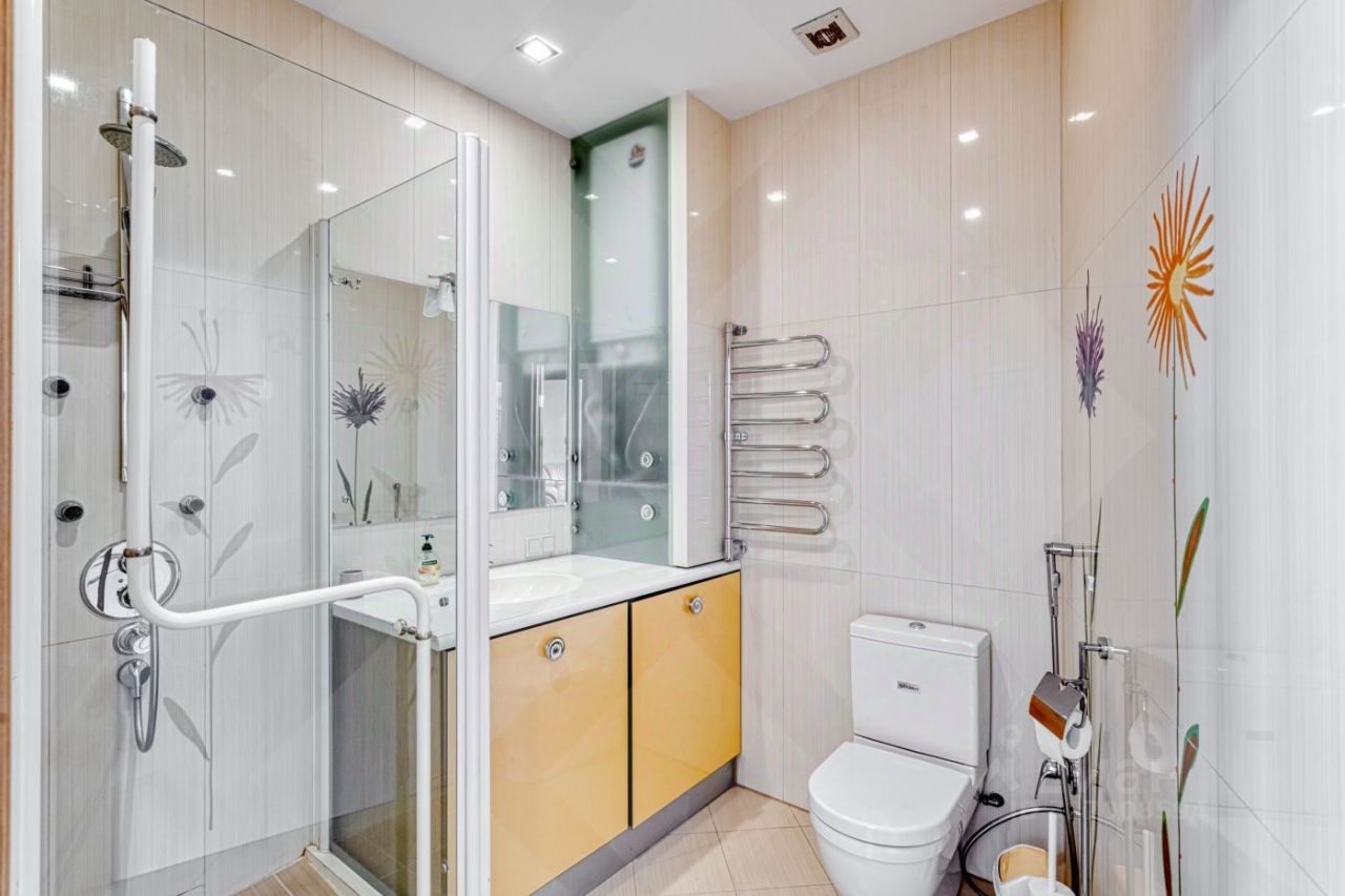 Функциональная планировка включает в себя: просторная кухня-гостиная с панорамными окнами и роскошным видом на город, две комфортабельные спальни, кабинет который можно переоборудовать под детскую, два с/у, кладовка. Презентабельная входная группа и развитая инфраструктура дома и района. В пешей доступности парки и скверы, медицинские клиники и салоны красоты, магазины, рестораны и кафе.