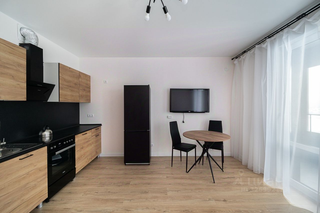Квартира отличается продуманной планировкой и современным ремонтом в светлых тонах, что создает атмосферу домашнего тепла и простора. Внутри есть абсолютно всё необходимое для вашего удобства: установлена качественная кухонная зона с плитой, вместительным холодильником и микроволновой печью, а также есть полный набор мебели, включая комфортное спальное место и систему хранения вещей.