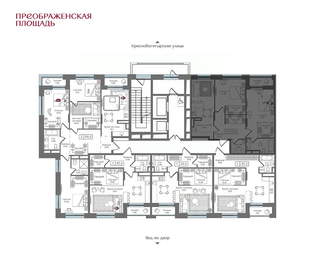 Квартира на 13 этаже в жилом комплексе премиум-класса ''Преображенская площадь''. Общая площадь: 72.8 кв.м.